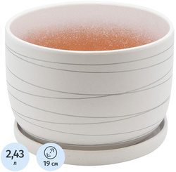 Горшок для цветов с поддоном Вещицы 2.43 л белый (13×19 см)<br><br>Белый керамический горшок с поддоном выполнен из высококачественной глины и имеет классическую круглую форму с оригинальным дизайном. Он подходит для комнатных растений и цветов, добавляя изысканности вашему интерьеру.<br><br>Объём горшка составляет 2.43 литра, с размерами: высота — 130 мм, ширина — 190 мм, ширина основания — 190 мм. В комплект входит поддон для сбора лишней воды. Дренажное отверстие помогает поддерживать оптимальную влажность для растений.<br><br>Горшок предназначен для установки на столах или полках, а также подойдет для рассады и выращивания цветов. Хороший подарок для любителей растений и декора.