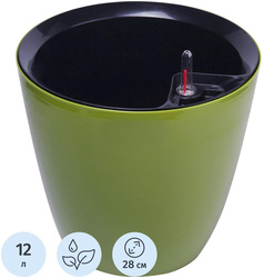 Горшок для цветов с автополивом Техоснастка Комфорт 12 л с внутренней вставкой 6 л оливковый (27×28 см)<br><br>Горшок для цветов с автополивом предназначен для удобного ухода за растениями. Система автополива работает по принципу капиллярного подъёма жидкости, обеспечивая растение необходимым количеством воды. Это способствует насыщенному цвету листьев, обильному цветению и быстрому росту.<br><br>Горшок выполнен из пластика, что придаёт ему лёгкость и долговечность. Общий объём горшка составляет 12 литров, из которых 6 литров занимает внутренняя вставка. Высота горшка — 27 см, ширина — 28 см, а ширина основания — 19 см, что обеспечивает его стабильность. Горшок оснащён индикатором уровня воды и дренажным отверстием, что помогает контролировать полив и избегать застойной воды.<br><br>Горшок выполнен в зелёном цвете и подходит для использования как в помещении, так и на улице. Он поможет сэкономить время и обеспечит необходимую заботу о ваших растениях.