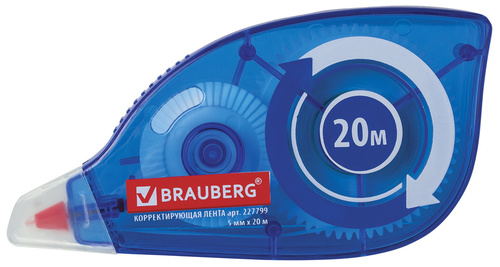 Увеличенной длины ленты 20 м хватит надолго, ширина - 5 мм. Оснащена механизмом перемотки для Вашего удобства. Корректирующая лента моментально исправляет ошибки - не нужно ждать высыхания. Исправления не заметны на ксеро- и факс-копиях. Плотное и точное покрытие. Цвет корпуса - синий. Поставляется в блистерной упаковке.