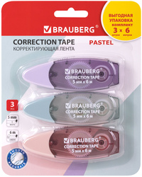 Выгодный формат упаковки – набор из трёх штук! Нежный дизайн корпуса представлен в трёх пастельных цветах. Общая длина одной корректирующей ленты – 6 м, ширина – 5 мм.