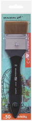 Кисть изготовлена с применением синтетики. Отличается универсальностью в использовании, обусловленной упругостью ворса и прекрасными впитывающими свойствами пучка. Короткая ручка из древесины покрыта лаком, что защищает ее от воздействия красок и влаги. Форма пучка - флейц № 50. Номер кисти соответствует реальной ширине пучка в миллиметрах. Упаковка - пакет с европодвесом и картонной подложкой.