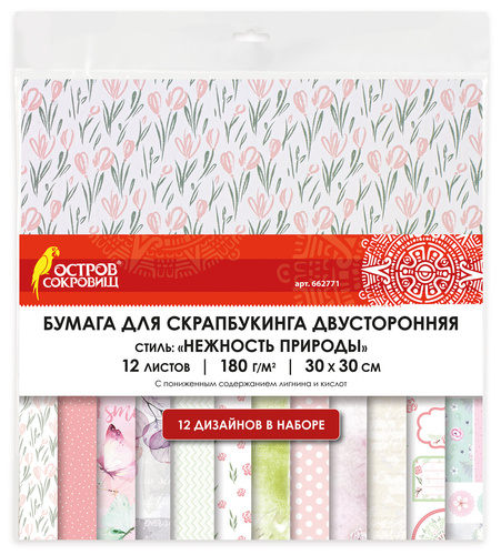 30х30 см "Нежность природы", двусторонняя, 12 листов, 12 дизайнов, 180 г/м2
