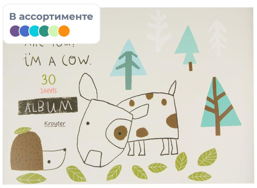 Альбом для рисования А4 (207×297 мм) 30 листов. Бумага рисовальная 100 г/кв.м, 100% целлюлоза, предназначен для сухих техник. Подходит для рисования карандашами, фломастерами, руками, линерами. Крепление — склейка. Мягкая обложка (230 г/кв.м) и подложка. Серия «Аnimals». <BR><BR>Внимание! Товар поставляется в <nobr>2-х</nobr> вариантах дизайна обложки (без возможности выбора).