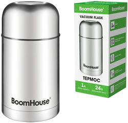 Термос оснащен пробкой со специальной кнопкой для стравливания излишнего давления в колбе, что позволяет легко открыть его без возможности случайно обжечься. Термос BOOMHOUSE подойдет для сохранения температуры первых или вторых блюд, напитков или даже мороженого. Ширина горлышка 8 см позволяет есть прямо из термоса, как тарелку также можно использовать вместительную крышку.