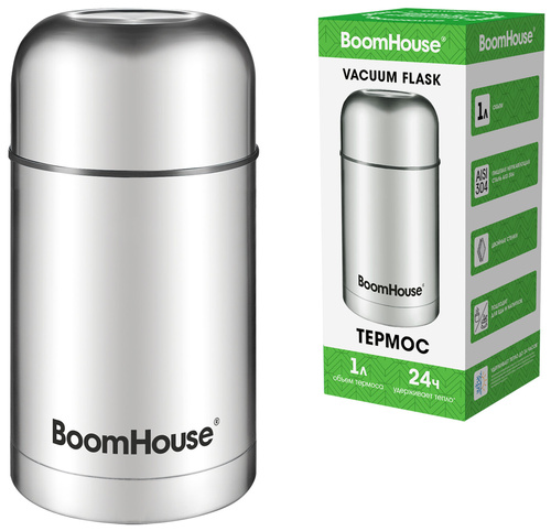 Термос BOOMHOUSE выполнен из долговечной пищевой нержавеющей стали SUS304 и безопасного для здоровья нетоксичного пластика (BPA free). Благодаря качественной вакуумной конструкции с двойными стенками, силиконовым уплотнителям и надежной крышке полностью герметичен и не протекает при использовании. Удержание температуры зависит от условий использования: частота открывания, время нахождения в открытом состоянии, температура окружающей среды, начальная температура наливаемой жидкости.