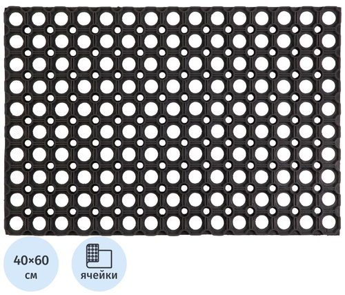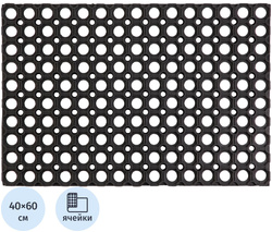 Коврик входной (придверный) ячеистый грязезащитный 40×60 см чёрный (FG-KM-010)<br><br>Материал: резина.<br>Благодаря сквозным отверстиям-ячейкам особой формы, коврик надёжно собирает снег и грязь с обуви, защищает от скольжения, является первичным этапом грязезащиты. Исходя из предназначения, такой коврик устойчив к истиранию и прослужит долго. Благодаря привлекательному дизайну создаёт неповторимый вид при входе в вашу квартиру, коттедж или офис.
