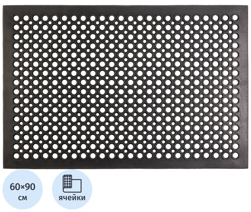 Коврик входной (придверный) ячеистый грязезащитный 60×90 см чёрный (FG-KM-005)<br><br>Материал: резина.<br>Благодаря сквозным отверстиям-ячейкам особой формы, коврик надёжно собирает снег и грязь с обуви, защищает от скольжения, является первичным этапом грязезащиты. Исходя из предназначения, такой коврик устойчив к истиранию и прослужит долго. Благодаря привлекательному дизайну создаёт неповторимый вид при входе в вашу квартиру, коттедж или офис.