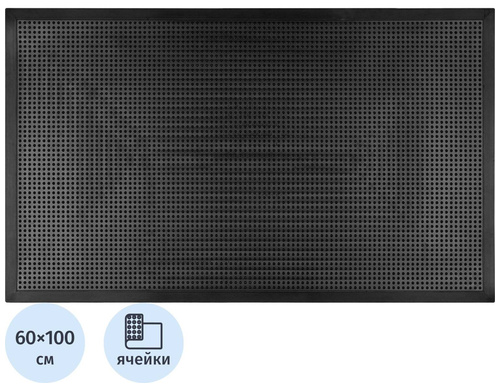 Коврик входной (придверный) ячеистый грязезащитный 60×100 см чёрный (FG-KM-004)<br><br>Материал: резина.<br>Благодаря сквозным отверстиям-ячейкам особой формы, коврик надёжно собирает снег и грязь с обуви, защищает от скольжения, является первичным этапом грязезащиты. Исходя из предназначения, такой коврик устойчив к истиранию и прослужит долго. Благодаря привлекательному дизайну создаёт неповторимый вид при входе в вашу квартиру, коттедж или офис.