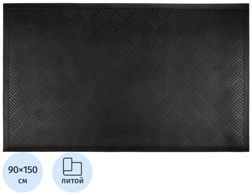 Коврик входной (придверный) литой грязезащитный 90×150 см чёрный (FG-KM-002)<br><br>Материал: резина. <br>Благодаря сквозным отверстиям-ячейкам особой формы, коврик надёжно собирает снег и грязь с обуви, защищает от скольжения, является первичным этапом грязезащиты. Исходя из предназначения, такой коврик устойчив к истиранию и прослужит долго. Благодаря привлекательному дизайну создаёт неповторимый вид при входе в вашу квартиру, коттедж или офис.