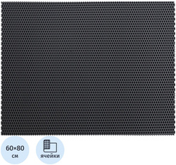 Коврик входной (придверный) Evaline Соты ячеистый влаго-грязезащитный 60×80 см серый (УК060080)<br><br>Представляем вам новый универсальный коврик «Кросс» из материала ЭВА с лаконичным дизайном!<br>Рисунок нового коврика выглядит более эстетично, имеет более плавные формы.<br><br>Повышена функциональность коврика — за счёт увеличенных ячеек, коврик способен задерживать ещё большее количество влаги, а тонкие стенки ячеек делают лист более эластичным. В коврике универсальном «Кросс» — даже под наклоном влага остаётся в ячейках. Коврик легко можно вырезать под нужный размер, обычным строительным ножом.<br><br>Варианты использования коврика универсального «Кросс»:<br>В автомобиль — в качестве замены штатным коврикам, например, в багажник.<br>В квартиру, в качестве лотка под обувь, на который зимой будет стекать снег, а летом осыпаться песок. Долой соляные лужи из коридора!<br>В ванную комнату — коврик вбирает влагу и на нём не скользят ноги. После себя оставляем комфортный сухой пол. <br>Под любой холодильник, во-первых, коврик гасит вибрацию, во-вторых, при «разморозке» холодильника он соберёт всю влагу в себя.<br>Под кофе машину любого размера. Коврик не даёт распространяться влаге.<br>Лоток для мебельных полок (например, для обувных полок; под хранение инструментов; полок с ванными принадлежностями)<br>Лоток под миску (и не только) для домашних животных, корм больше не будет разбросан по всему коридору, он будет в определённой зоне.<br>Подставка под цветочные горшки. Поливая цветы, мы иногда проливаем воду, и нам снова и снова приходится убирать влагу, внеплановую уборку можно избежать, просто постелив коврик под горшок.<br><br>Внимание — коврик ЭВА «Кросс» нельзя мыть горячей водой, с температурой более +50С.