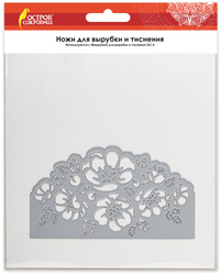 В набор входит 1 стальной нож размером 151х88 мм в форме фигурного кармашка, украшенного букетом цветов. Нож многофункционален: он позволяет не только создать вырубку, но и добавить изящный эффект тиснения на ее поверхность. Материалы, подходящие для работы - бумага, картон, алюминиевая фольга для рукоделия, фоамиран и другие.