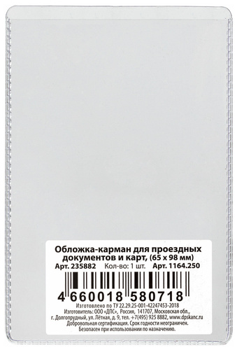 | 593-022 | 98х65 мм, ПВХ, прозрачная | шт |