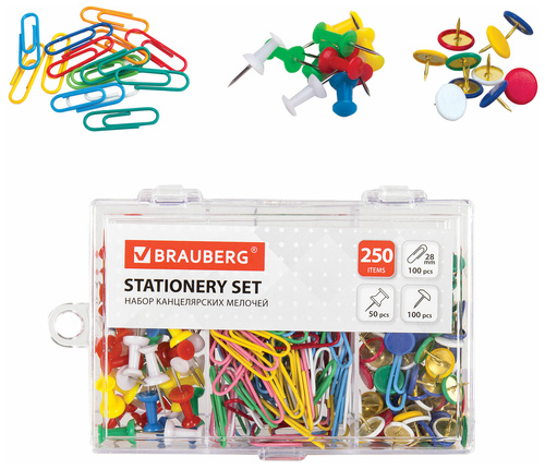| 342-873 | скрепки цветные 28 мм/100 шт., кнопки канцелярские 100 шт., силовые кнопки 50 шт | набор |
