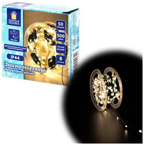 | 981-719 | "Роса" IP44, 50 м, 500 LED, теплый белый, 220V, контроллер | шт |