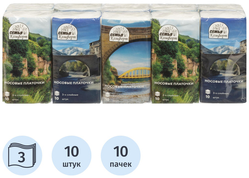 | 652-498 | 3 слойные, 10 пачек по 10 платков, белые | шт |